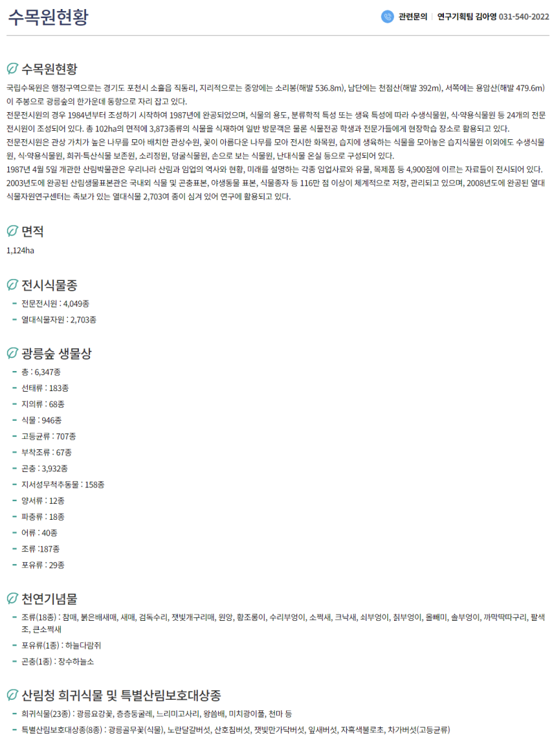 - 💡 주요 사업: 산림생물표본관 운영, 산림생물 다양성 연구, 기후변화 대응 연구, 유용식물 개발 및 활용, 산림교육 및 전시 프로그램 운영 등