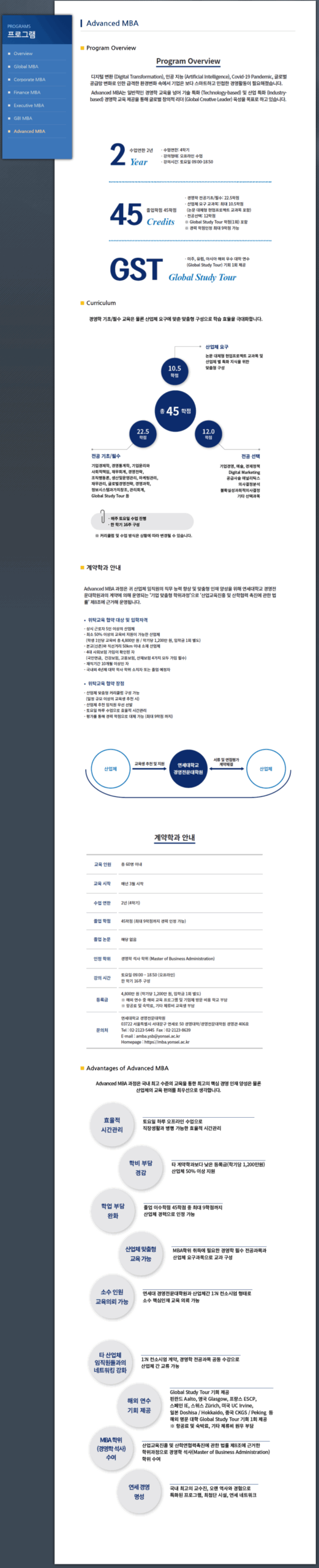 - ● 주요 프로그램: Global MBA, Corporate MBA, Executive MBA 등 다양한 맞춤형 프로그램을 통해 각자의 커리어 목표에 맞는 심화 학습 기회를 제공.