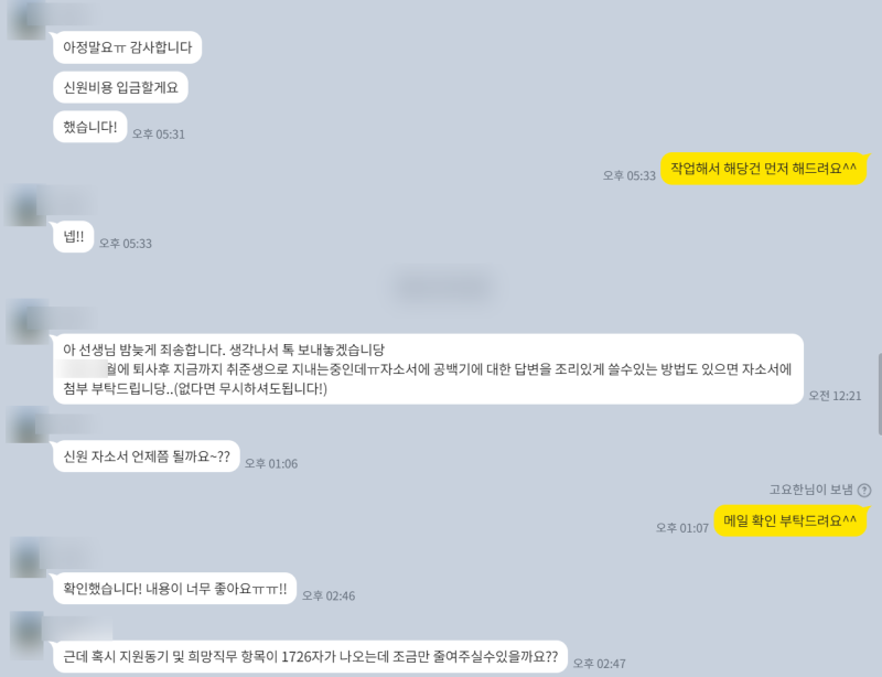 - >> 지원자님의 의견 반영 및 수정 보완 작업 (무제한 피드백으로 완성도 UP!)