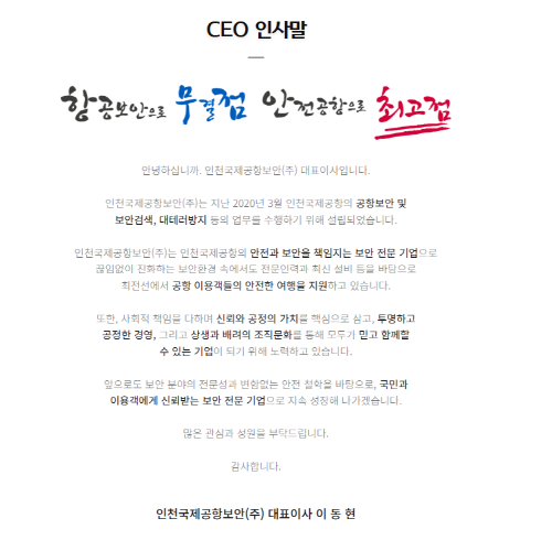‘세계 최고 수준의 공항 보안 서비스 제공을 통한 국민의 안전과 국가 경쟁력 강화에 기여’