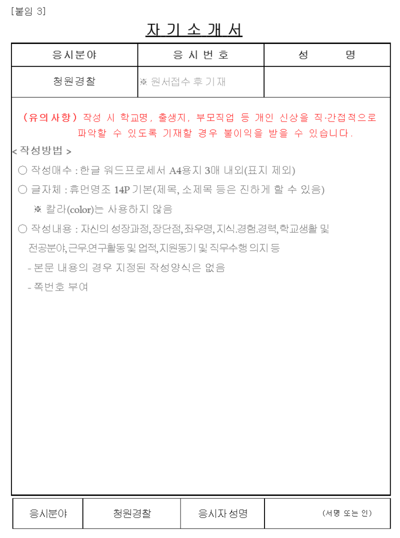 청원경찰 자기소개서 문항 (예시) 🖊️