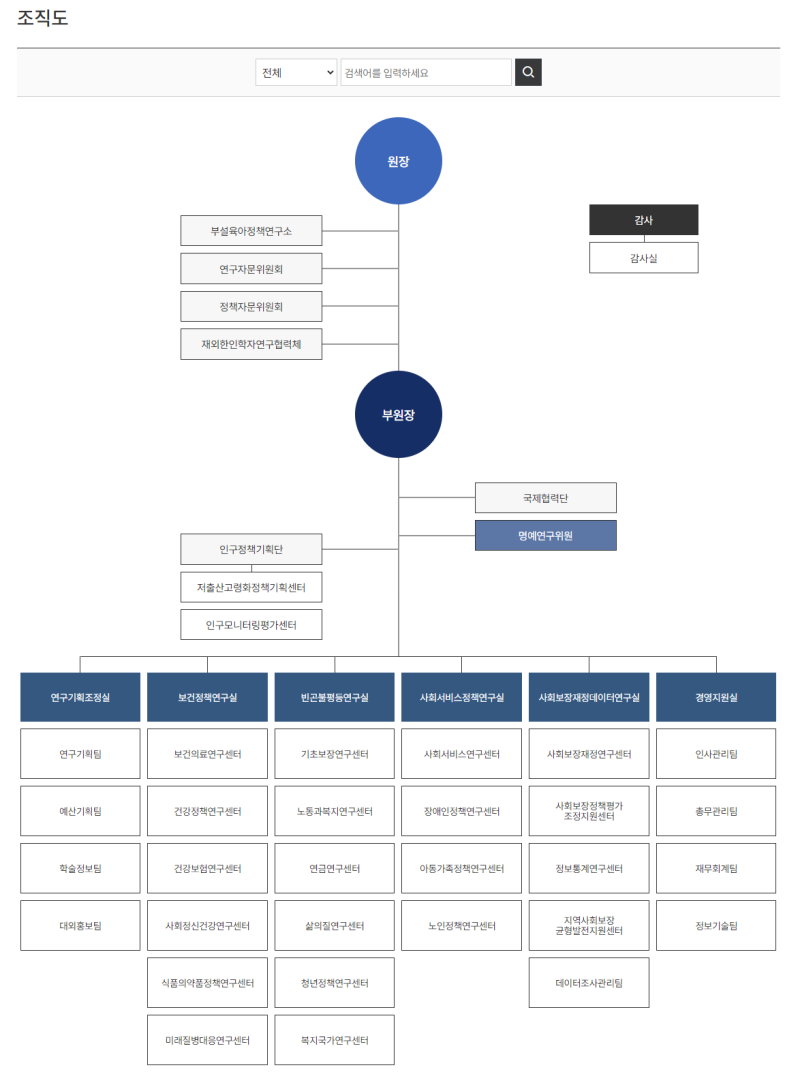 - 주요 사업: 보건의료, 사회서비스, 소득보장, 인구정책, 사회통합 등 분야별 연구 수행 및 정책 제안
