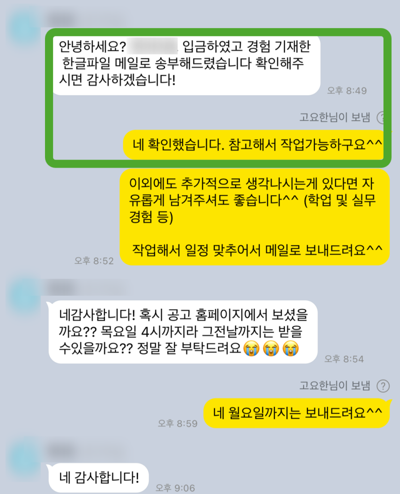 이 모든 과정은 지원자님께 최고의 결과를 안겨드리기 위한 저의 꼼꼼함과 전문성이 녹아 있어요! 💡