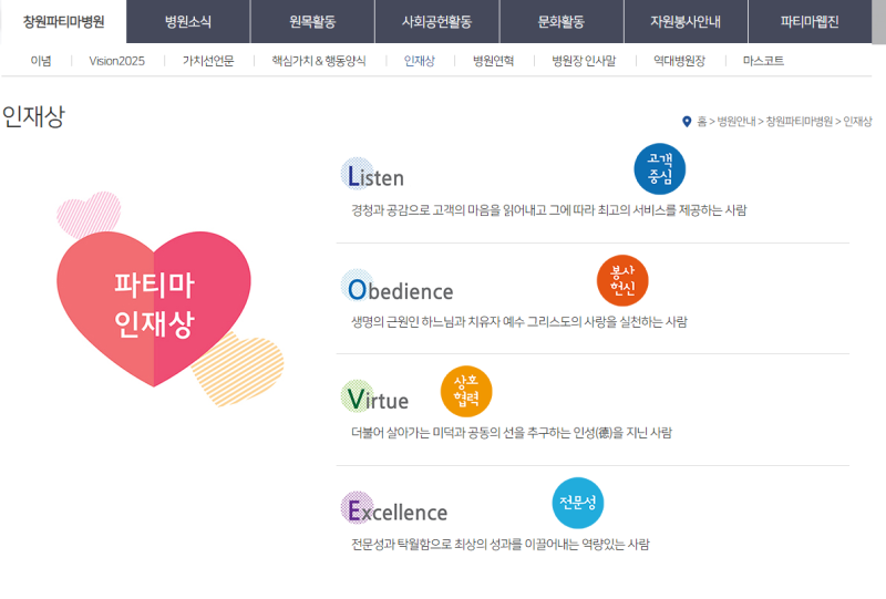 - ✨ 핵심가치: 사랑과 봉사, 전문성, 소통과 협력, 혁신과 발전, 책임감