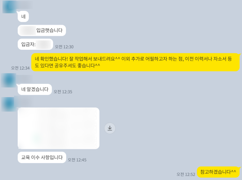 - >> 1차 완성본 전달 및 피드백: 함께 검토하며 최종 완성도를 높여요.