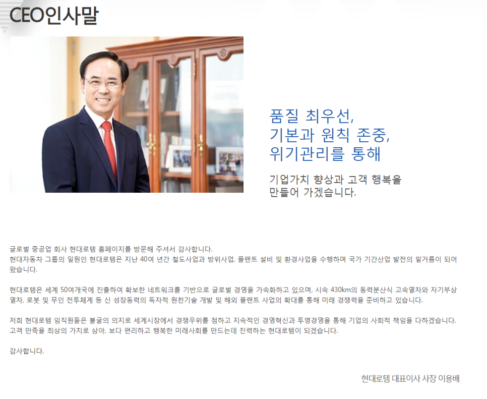 현대로템 분석 자료 (핵심 가치, 비전, 인재상)