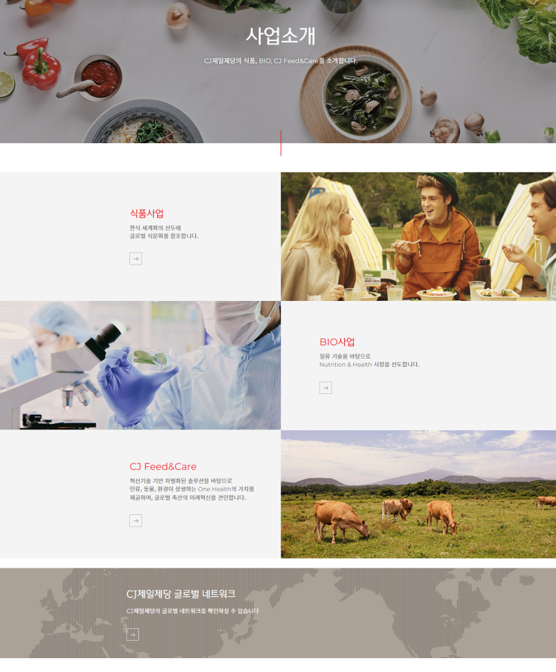 ✔ 주요 사업: 식품 (가공식품, 신선식품), 바이오 (아미노산, 스페셜티), Feed & Care (사료, 축산 사업)